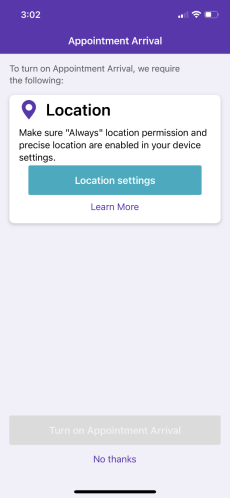 To use Appointment Arrival, you’ll need to have the MyChart app downloaded on your smartphone. From there, follow these instructions to enable Appointment Arrival. Please note that the following instructions are for the MyChart mobile app, and do not apply to the desktop computer version of MyChart. Appointment Arrival only works on the MyChart mobile app.